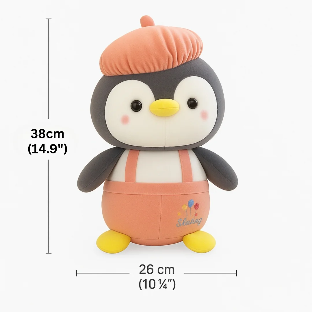 Cute with a playful twist. Peachy Waddle stands out with its cap-style design and smooth, plush texture—perfect for hugs, shelves, or gifting someone special.